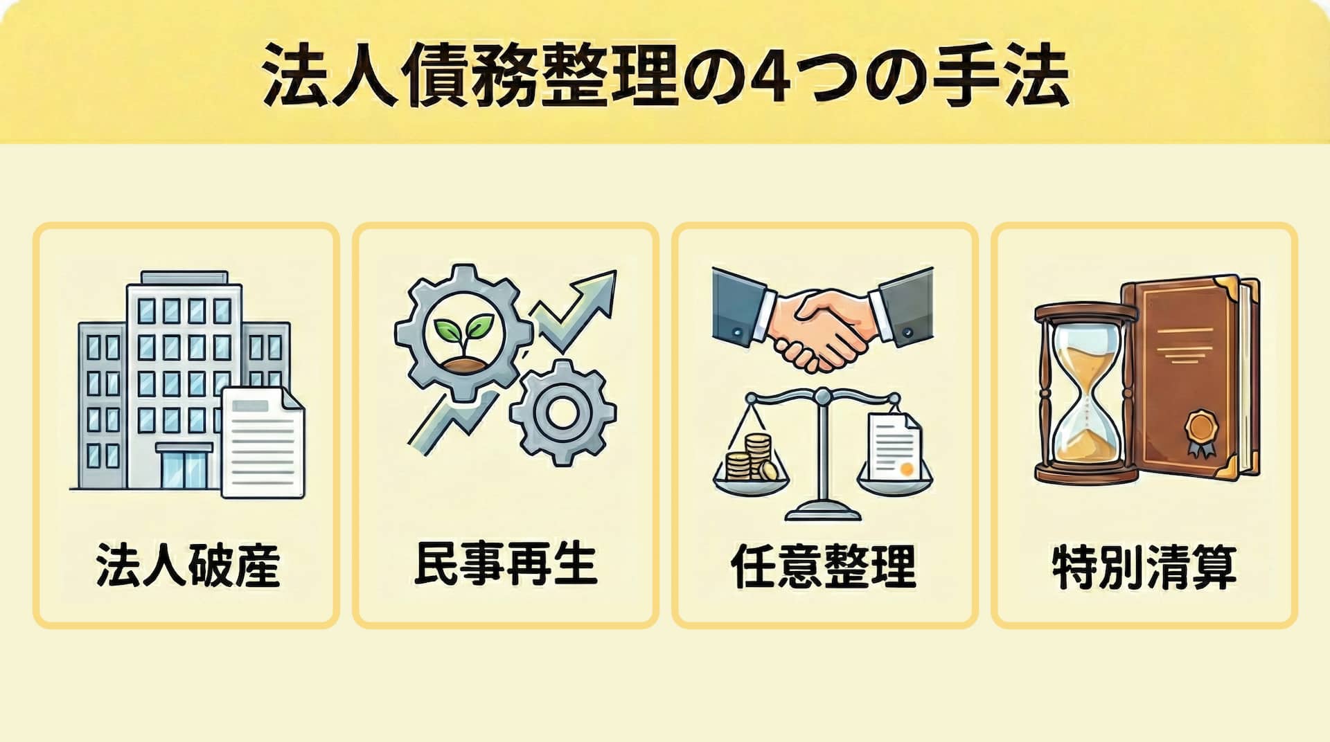 - 会社債務整理の4つの種類とそれぞれの特徴